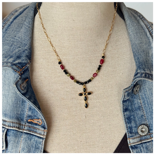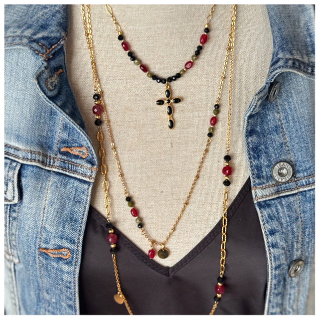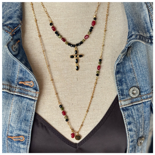 Ensemble colliers bordeaux et noir avec croix